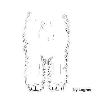 Lift the hair between the toes combing upwards and cut using curved scissors making a nice round foot, but don't cut to much. Nails shouldn't be visible. However if you cut too much - don't worry, hair grows quickly on the feet. The rear part of foot hair must touch the ground with a gentle curve blending upward.