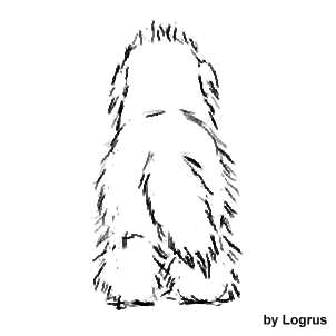 Start with brushing all of his coat and then comb it thoroughly. You don't want ANY matting. Start combing the furnishings on the hindquarters, lift the hair upwards with one hand, and comb the hair below your hand down to the skin keep moving upwards until all of the hair has been combed. Repeat this on all four legs. Be sure to comb through the hair between the legs but be careful. You don't want to break the hair off. Hold the tail up and let the hair fall downwards. Brush through the tail hair removing any tangles. Keep brushing through the tail until you reach the tail set. Next brush the back from croup to neck and flanks from belly to back. Remember to comb carefully under the armpit. Last forequarters, neck, under and behind ears and head. Now cut the nails and clean the ears.